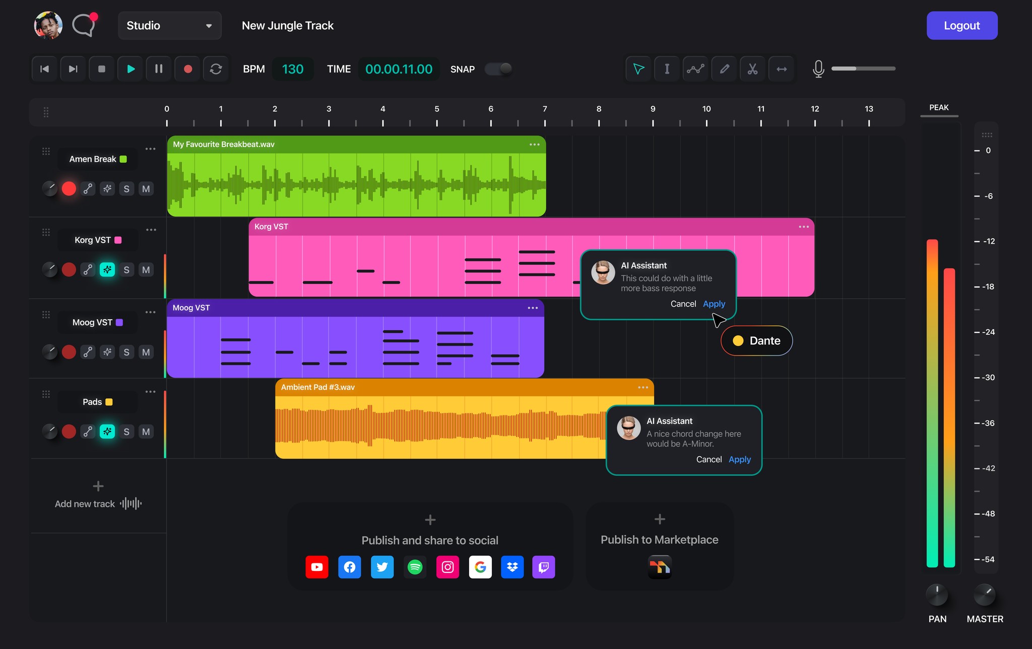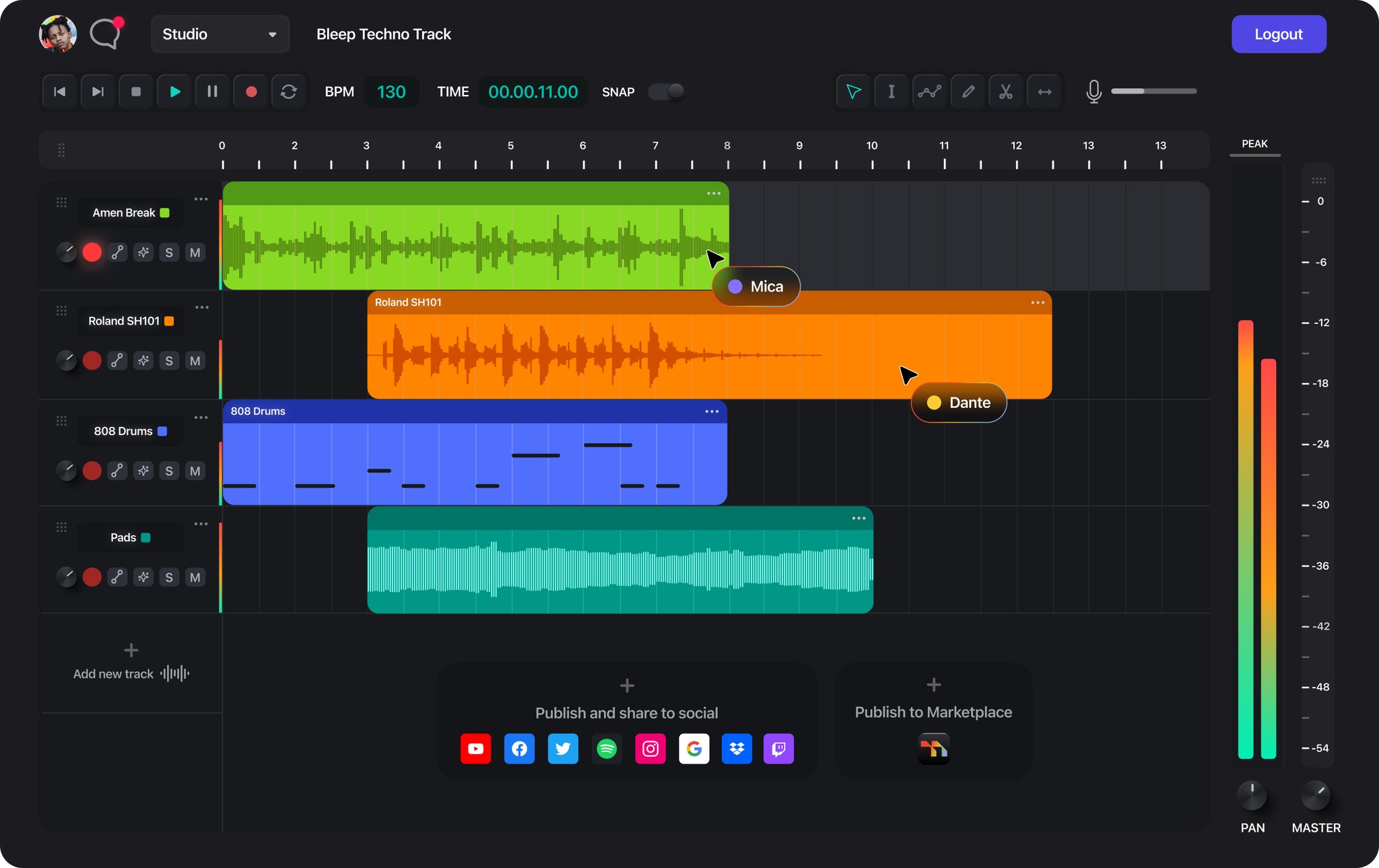 Need a raw techno loop at 3AM? Album-ready visuals without Photoshop? Want to master, publish, and collab without ever