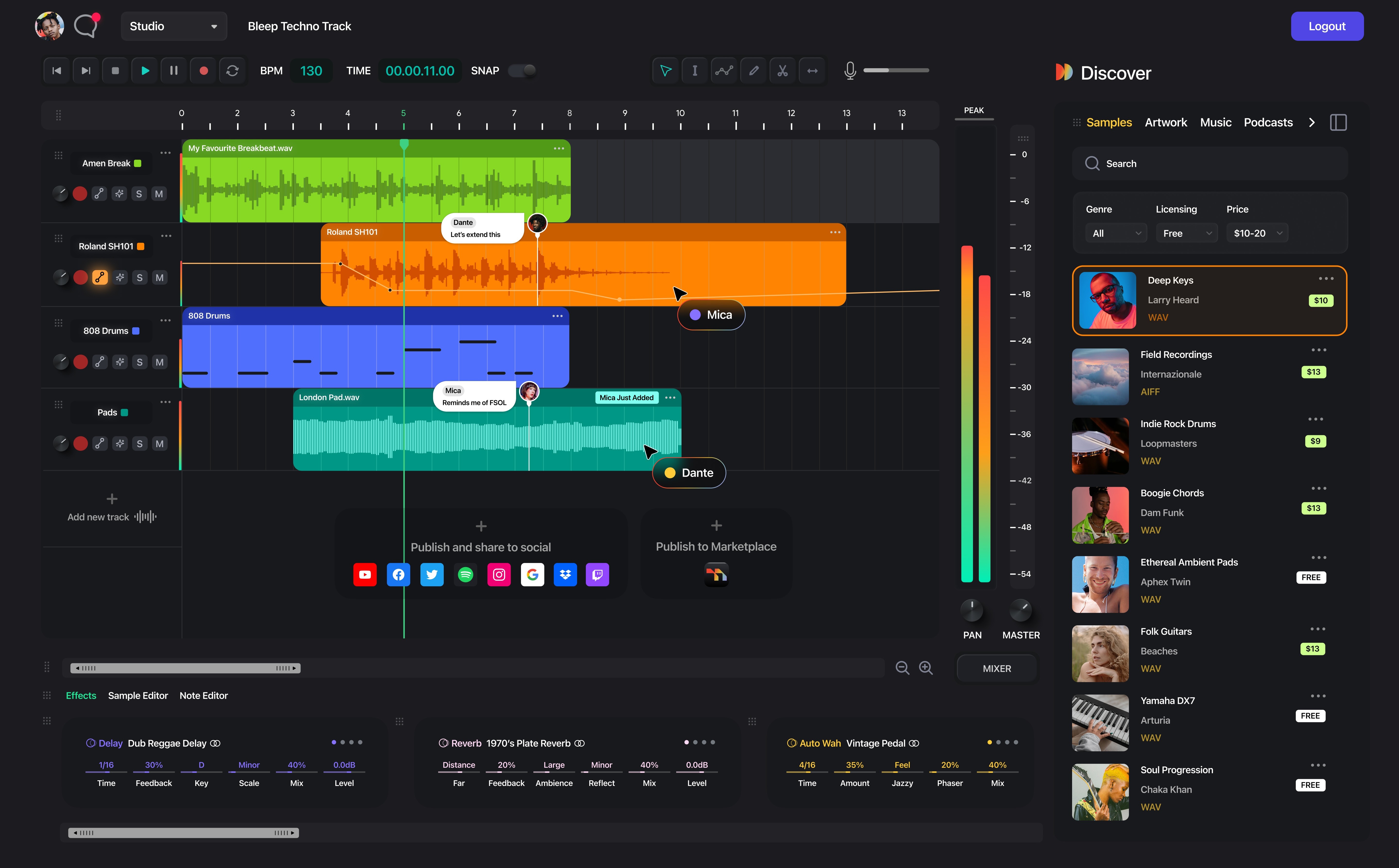 Jam live with collaborators around the world in the same project. Built-in voice chat, synced playheads, and track locking keep your session flowing, no file shuffling required.